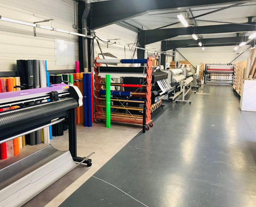 Spécialisé dans l’impression numérique à vocation notamment de grand format, nous disposons d’un vaste site de production situé dans la périphérie bordelaise. Notre parc machine est doté de 5 imprimantes numériques grand format (roll to roll et table à plat) et d’un atelier de façonnage (table rollsroller de contrecollage, table de découpe à la forme). Plus d’infos